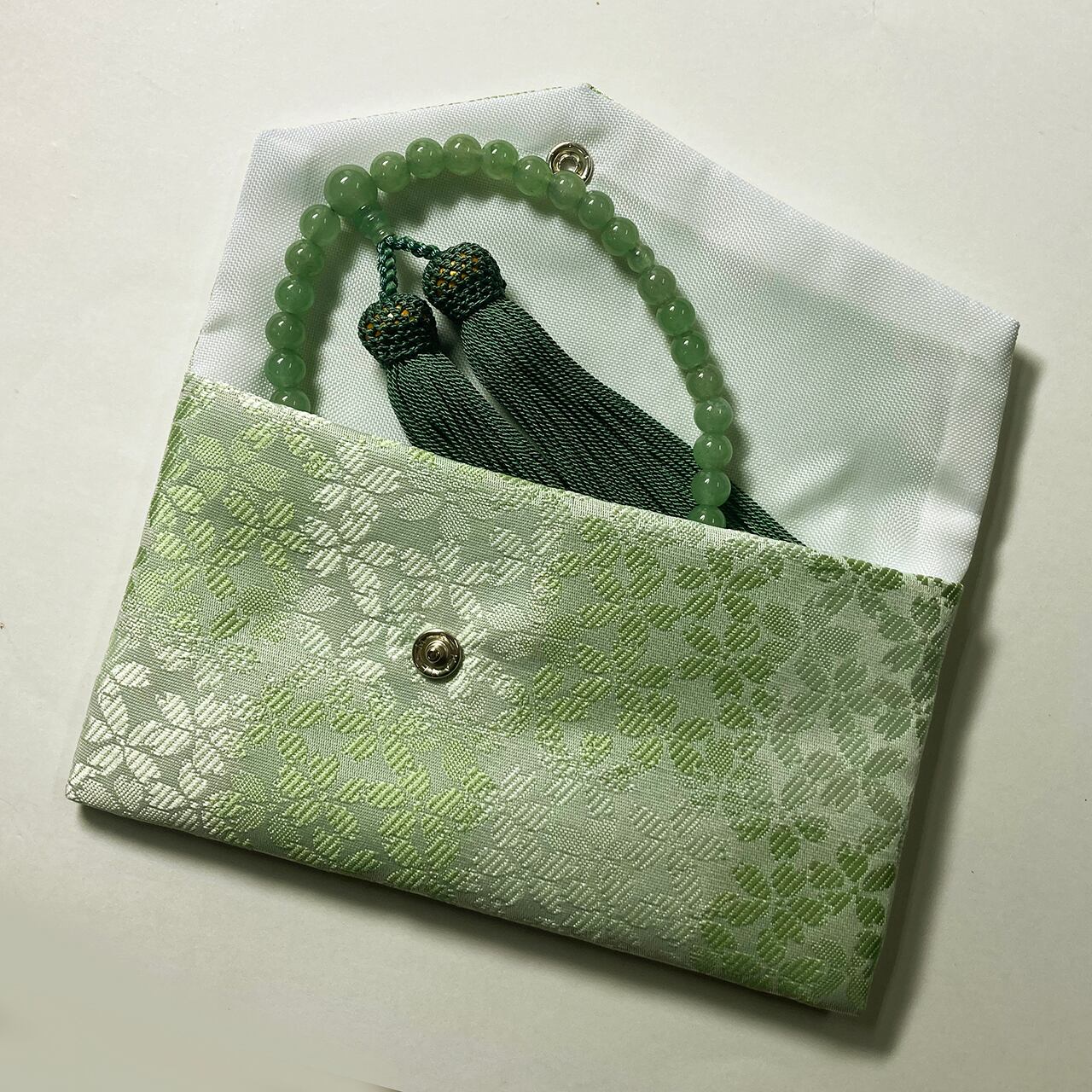 略式念珠 ヒスイ共仕立 正絹房 念珠袋付