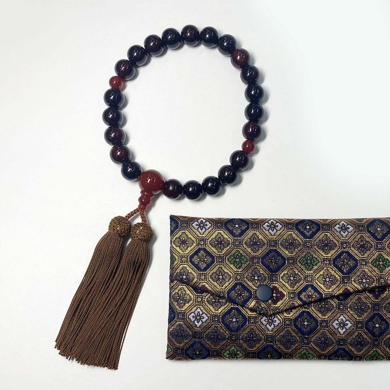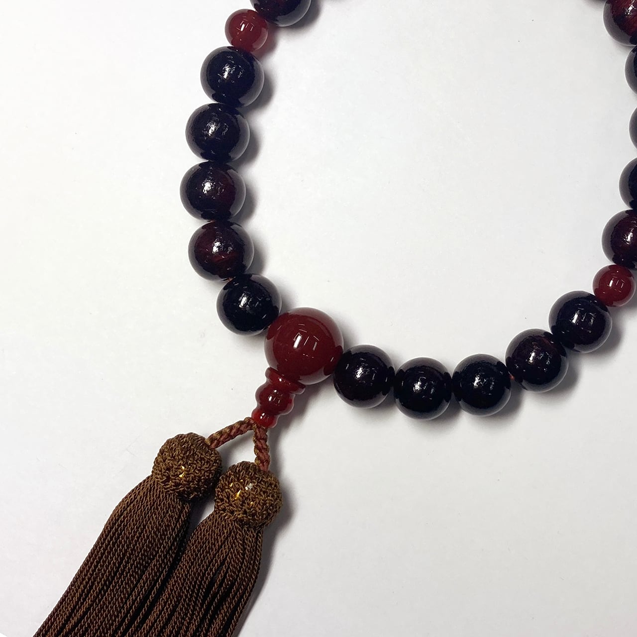 つやあり紫檀にメノウを合わせた優しい印象の念珠です