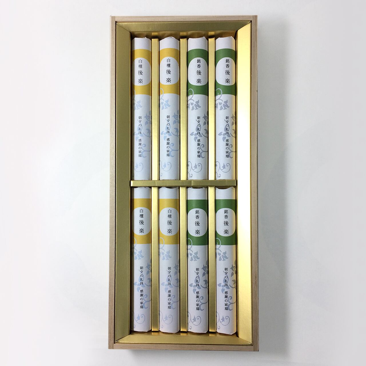 進物 御供線香 銘香・白檀後楽 短寸各4把 桐箱入