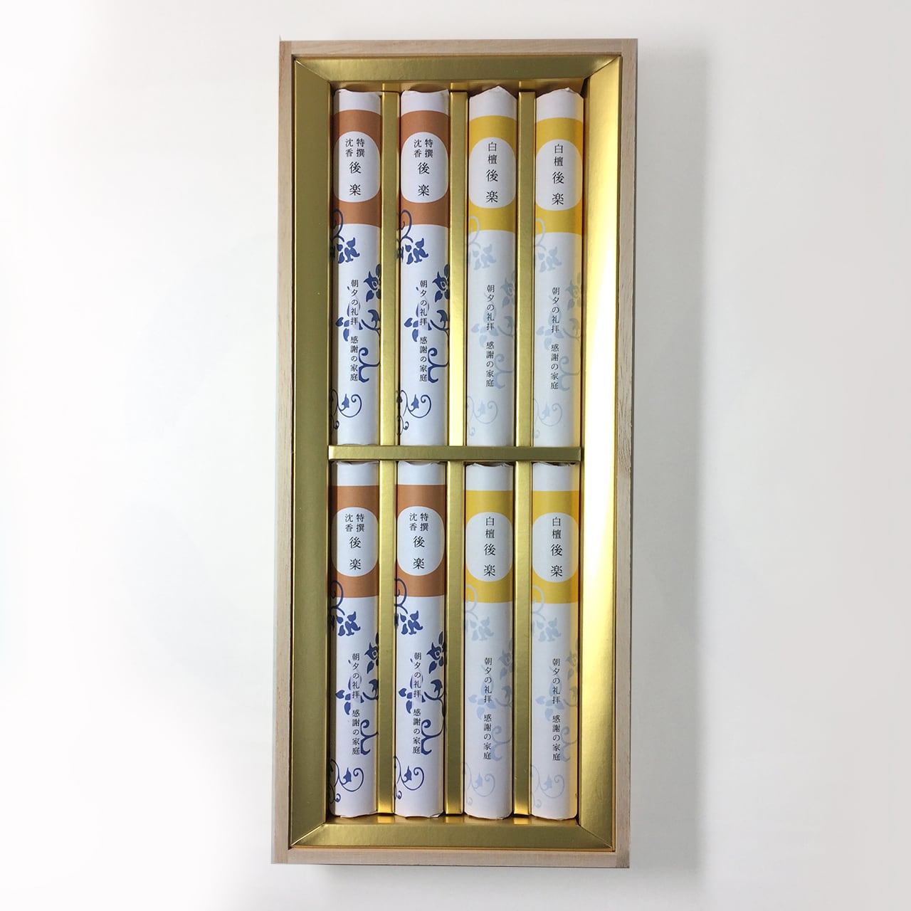進物 御供線香 特撰沈香・白檀後楽 短寸各4把 桐箱入